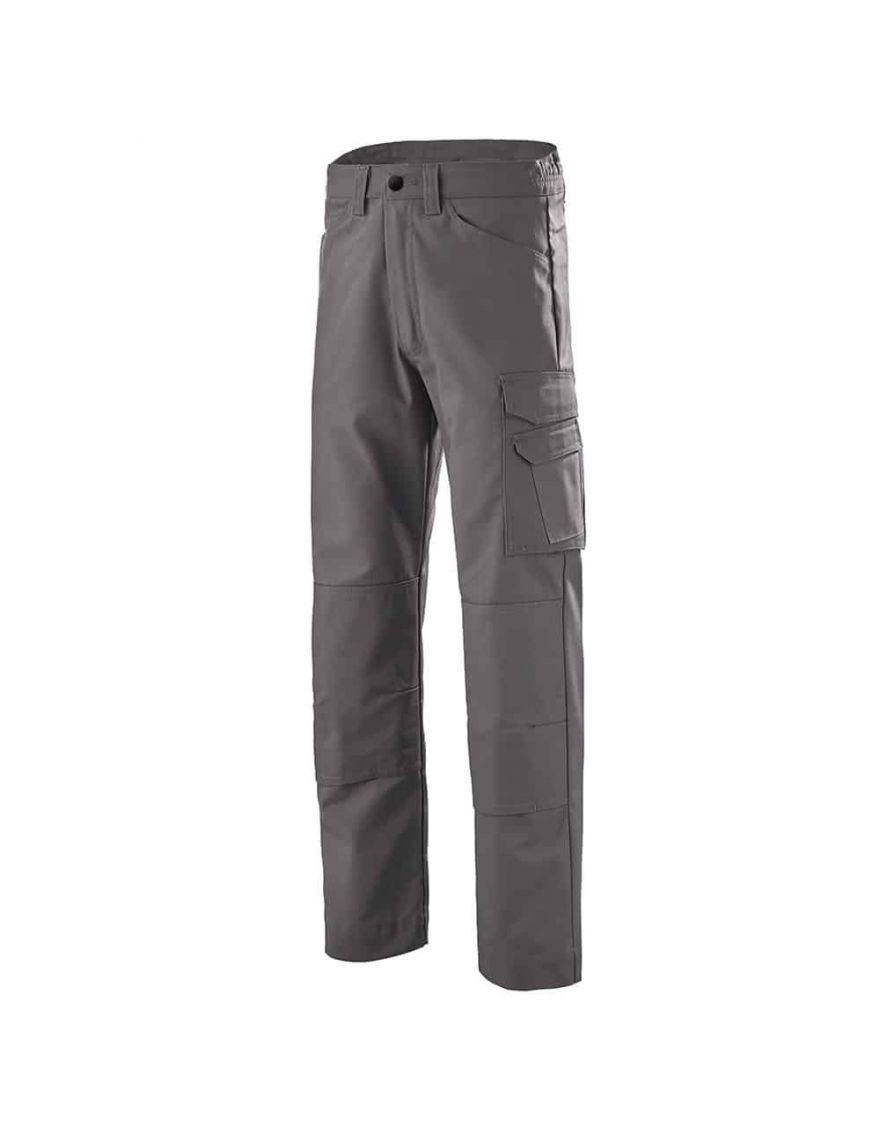 Coupe confortable avec jambes préformées (couture arrière intégrant une pince au niveau des genoux). Ceinture couvrant les reins (rehausse arrière) avec passants et double réglage élastique pour un confort optimal. Poches latérales droites. Poches multifonctions sur les cuisses (pour téléphone, mètre) avec soufflets et fermetures à bandes auto-agrippantes. Une boucle en plastique pour porte-clés. Une poche arrière avec rabat et fermeture à bande auto-agrippante.